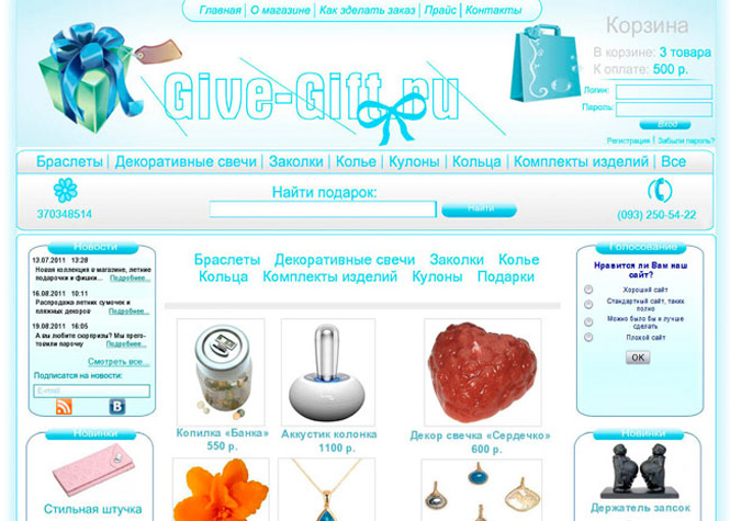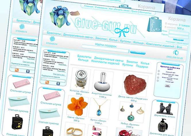 Шаблон для сайта подарков. Дизайн, верстка и шаблонизация под cms. Дизайн был создан под заказчика и его нужды. Разработка шла под новый интернет магазин.