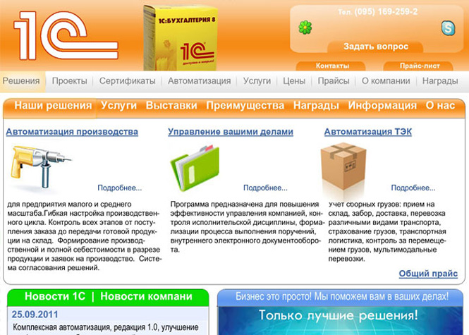 Дизайн сайта по настройке системы 1С