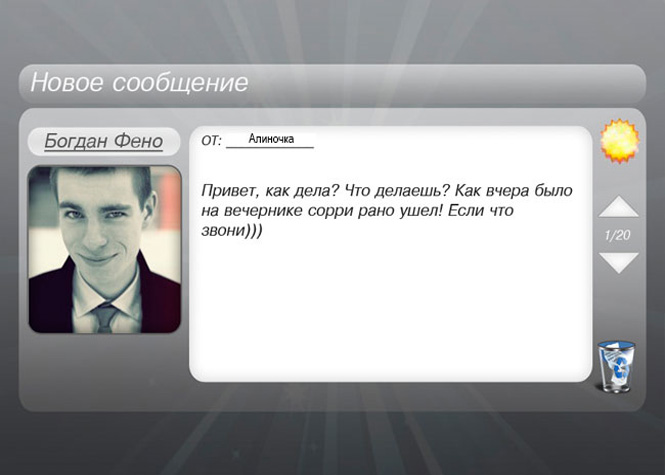 Интерфейс приложения под мобильную версию Android. Программа SMS сообщений