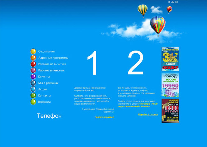 Сайт визитка SunCard