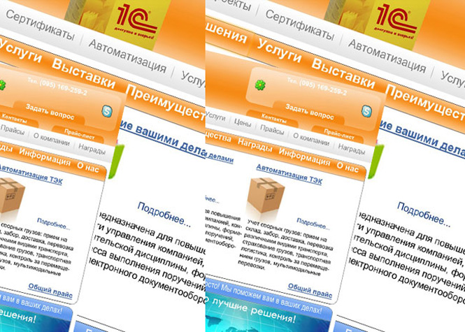 Дизайн сайта по настройке системы 1С