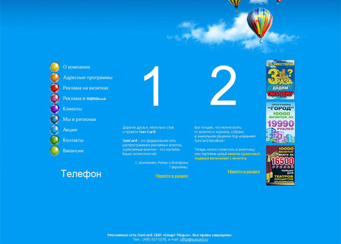 Сайт визитка SunCard