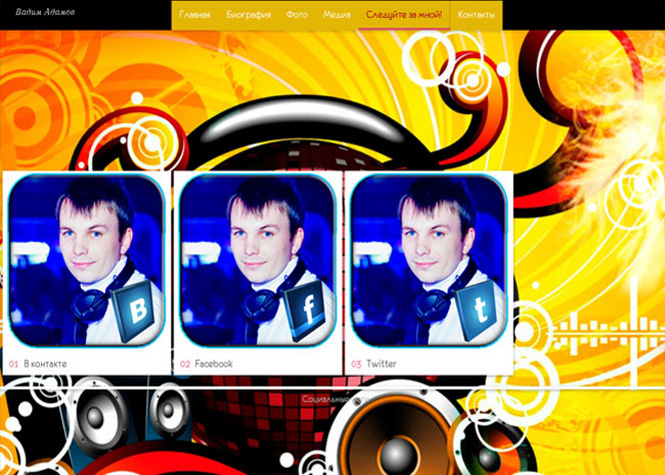 Личный сайт на технологии flash. Сайт визитка с фото и информацией.
